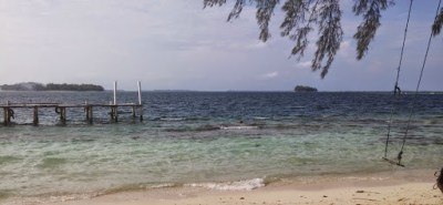 Setelah harap-harap cemas menuju Pulau Harapan, akhirnya kapal sampai juga jam 11 siang. Pemandangan dari pelabuhannya cukup bagus dan terlihat gradasi warna biru muda dan biru tua. Kami pun menuju homestay dan makan siang di sana. Saya satu kamar berlima cewe-cewe semua. Homestaynya namanya Baronang 3 dan cukup oke, ada ACnya.