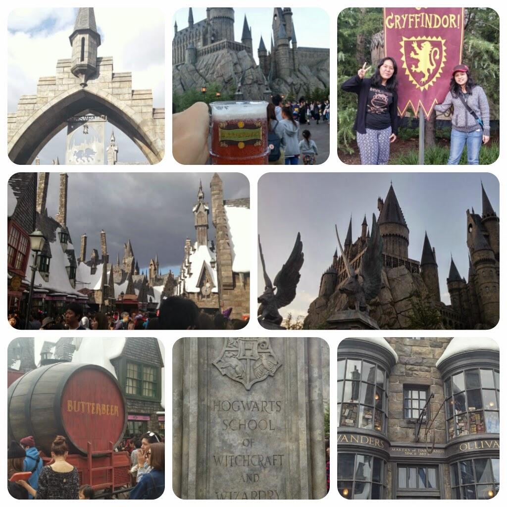 Kami sampai di Universal Studio (180 Yen via JR Line) sekitar jam 1 siang, maklum bangun tidurnya aja baru jam 10. Udara sudah jauh lebih cerah dari kemarin. Taifun telah pergi jauh dari Osaka. Kami menitipkan tas di loker, kemudian membeli tiket seharga 6980 Yen. Agak heran karena tempat ini super super rame padahal hari biasa. Kami pun foto-foto di bola dunia khas Universal Studio lalu langsung menuju ke wahana Harry Potter. Ternyata kita harus ambil jam antrian masuk dulu untuk masuk ke wahana ini, sangking banyaknya pengunjung yang mau ke situ. Kami dapat jam antrian masuk, jam 3. Sambil menunggu, kami menaiki wahana-wahana lain terlebih dulu. Satu hal yang agak ajaib dari USO adalah, setiap karakter di wahana yang kami naiki memakai bahasa Jepang. Kami sukses mengantuk saat karakter tersebut ngoceh-ngoceh sendiri dalam bahasa Jepang. Hahahha.