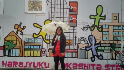 Saya dan Melta kemudian mencari payung dan mendapatkan payung transparan ala ala orang Jepang (565 Yen*). Payung ini yang akhirnya melindungi kami selama perjalanan jalan kaki ke Shitennoji Temple. Dan.. setelah susah payah jalan ke sana, Shitennoji temple pun juga tutup! Hhh.. agak kecewa, tapi ya sudahlah kami berfoto-foto saja di depan. Sekembalinya dari Shitennoji Temple, kami langsung kembali ke tempat bis Willer Express. Rencana awalnya, kami ingin melihat-lihat Universal City Walk, namun karena perjalanan ke sana harus ditempuh dengan JR dan JRnya sudah tutup. Ya apa boleh buat.